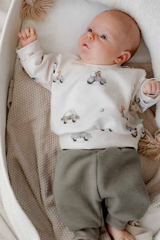 Baby Set Autos – Oversize Pulli in Olive und Pumphose