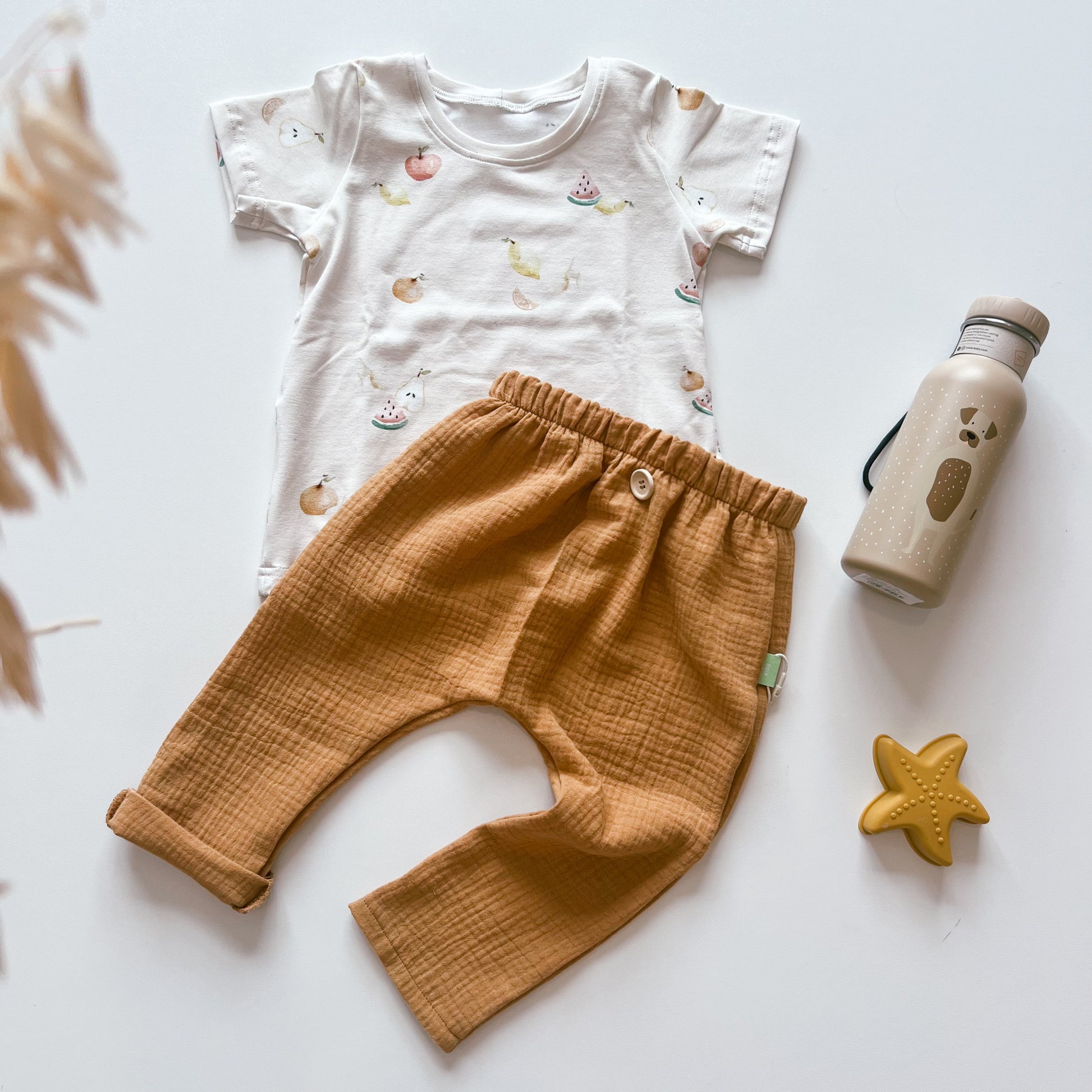 Die Musselin Lounge Hose in camel von Mimor Kids ist perfekt für kleine Abenteurer. Die leichte und bequeme Hose eignet sich ideal für Sommer und Herbst und sorgt für optimalen Tragekomfort. Genießen Sie entspannte Tage mit dieser Lounge Hose in trendigem camel Farbton.