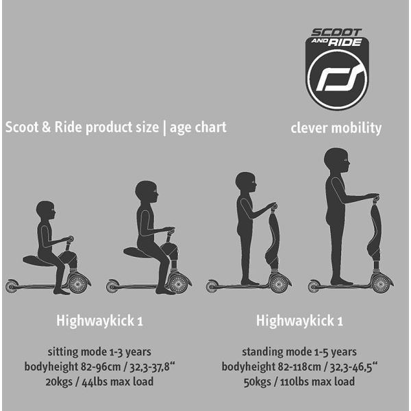 Verwandlung in wenigen Sekunden - ganz ohne Werkzeug! Der HighwayKick 1 ist so ideal anpassbar und für Kinder von ca. 1 - 5 Jahren geeignet.
